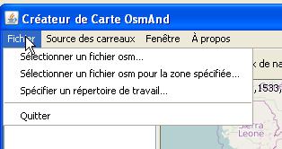 Il faut en premier lieu ouvrir le menu Fichier et spécifier un répertoire de travail où les données téléchargées viendront se stocker, en cliquant sur « Spécifier un répertoire de travail ».